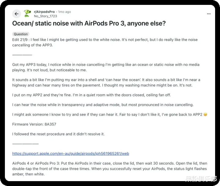 不过在过去的一个月,AirPods Pro 3 没少在社交平台上被「点名」。