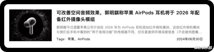 而按照消息人士 @郭明錤的说法,继发布 AirPods Pro 3 后,苹果将在 2026 年再次对其进行产品迭代。