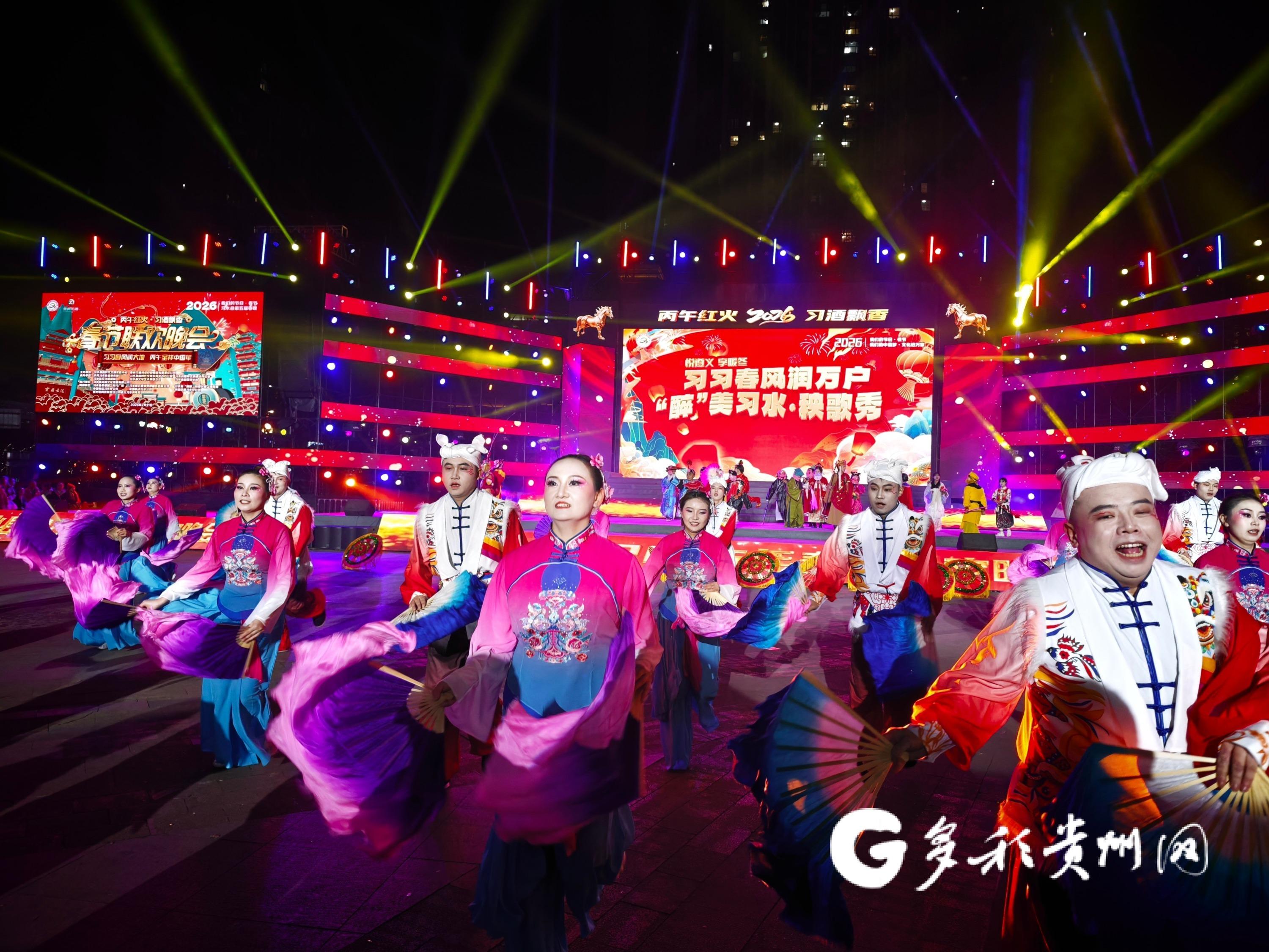 多彩贵州网讯 年味正浓,欢歌起舞。在“习习春风润大地·丙午呈祥中国年”2026年习水县春节联欢晚会的璀璨舞台上,“醉美习水·秧歌秀”以热烈奔放的姿态惊艳亮相,将传统民俗的厚重与新春佳节的喜庆相融相合,为全场观众献上一场兼具烟火气与仪式感的文化盛宴。